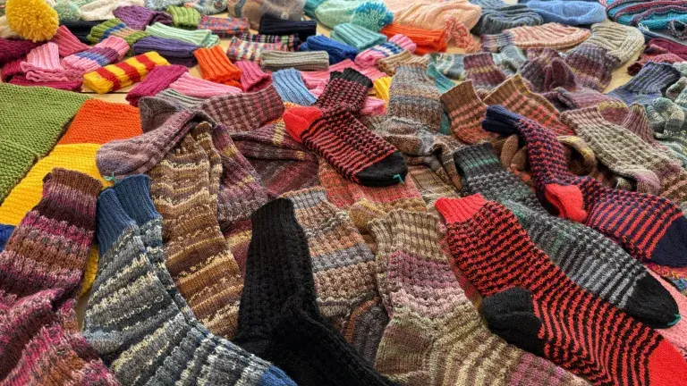 Wir stricken das ganze Jahr für die Aktion Weihnachtspäckli. Stricksachen können laufend im EGW abgegeben werden.